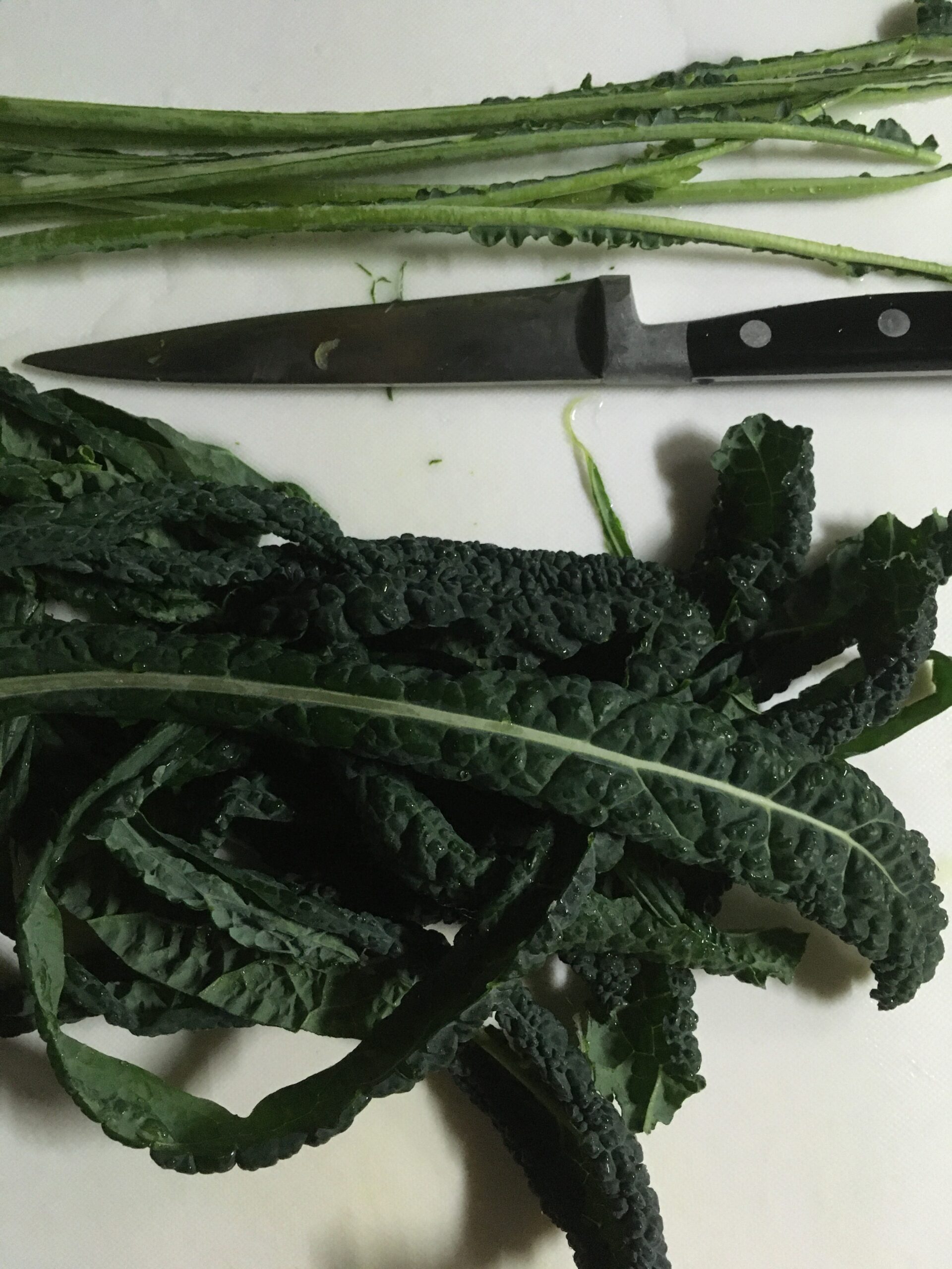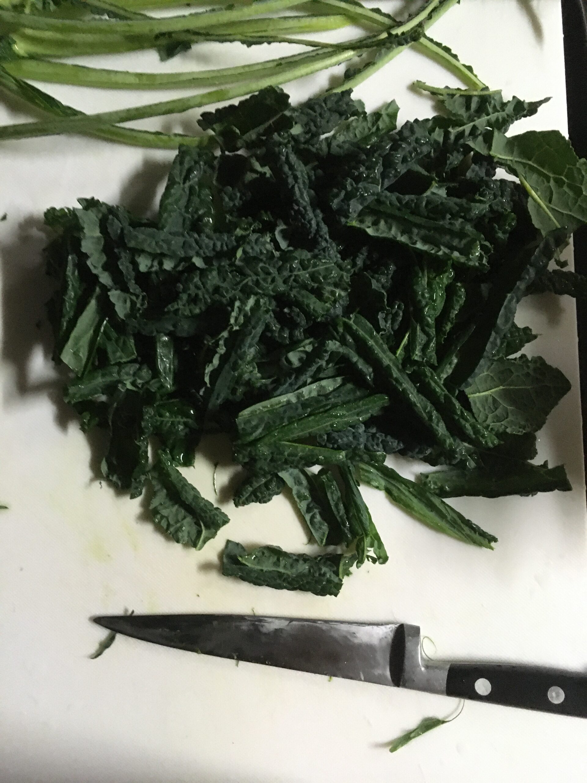 - カーヴォロネーロは中肋(真ん中の太い筋)を取り除き3〜4cm幅に刻む