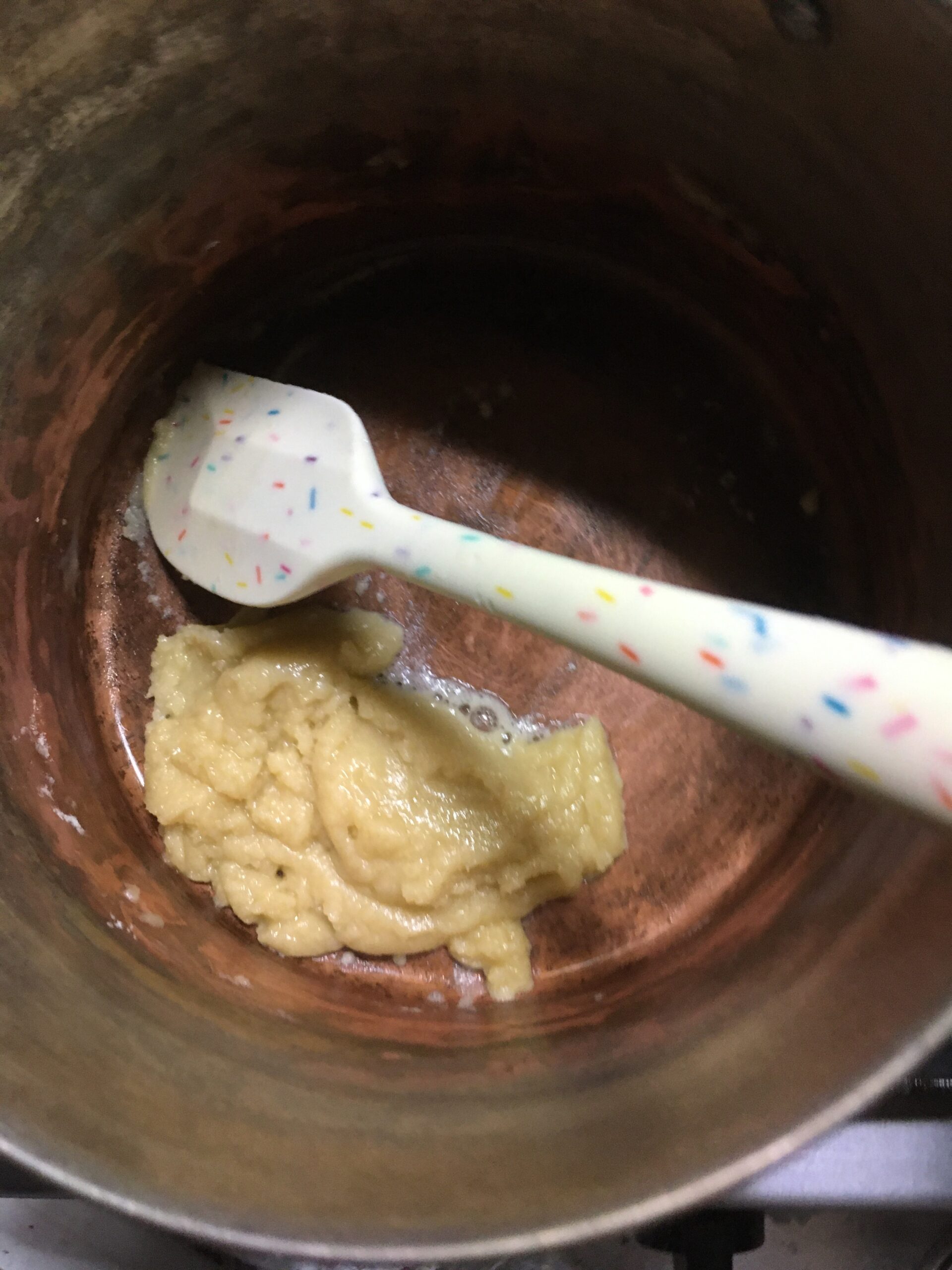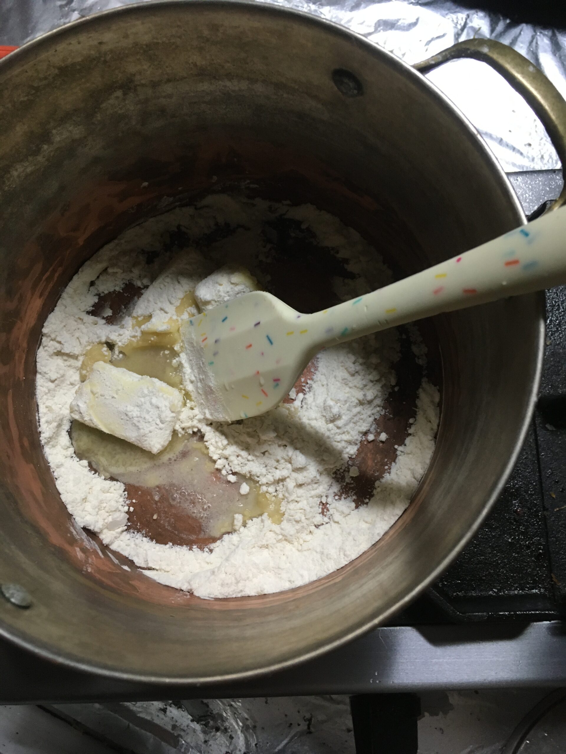 - 鍋にバター、小麦粉を入れて混ぜながらごく弱火にかける
