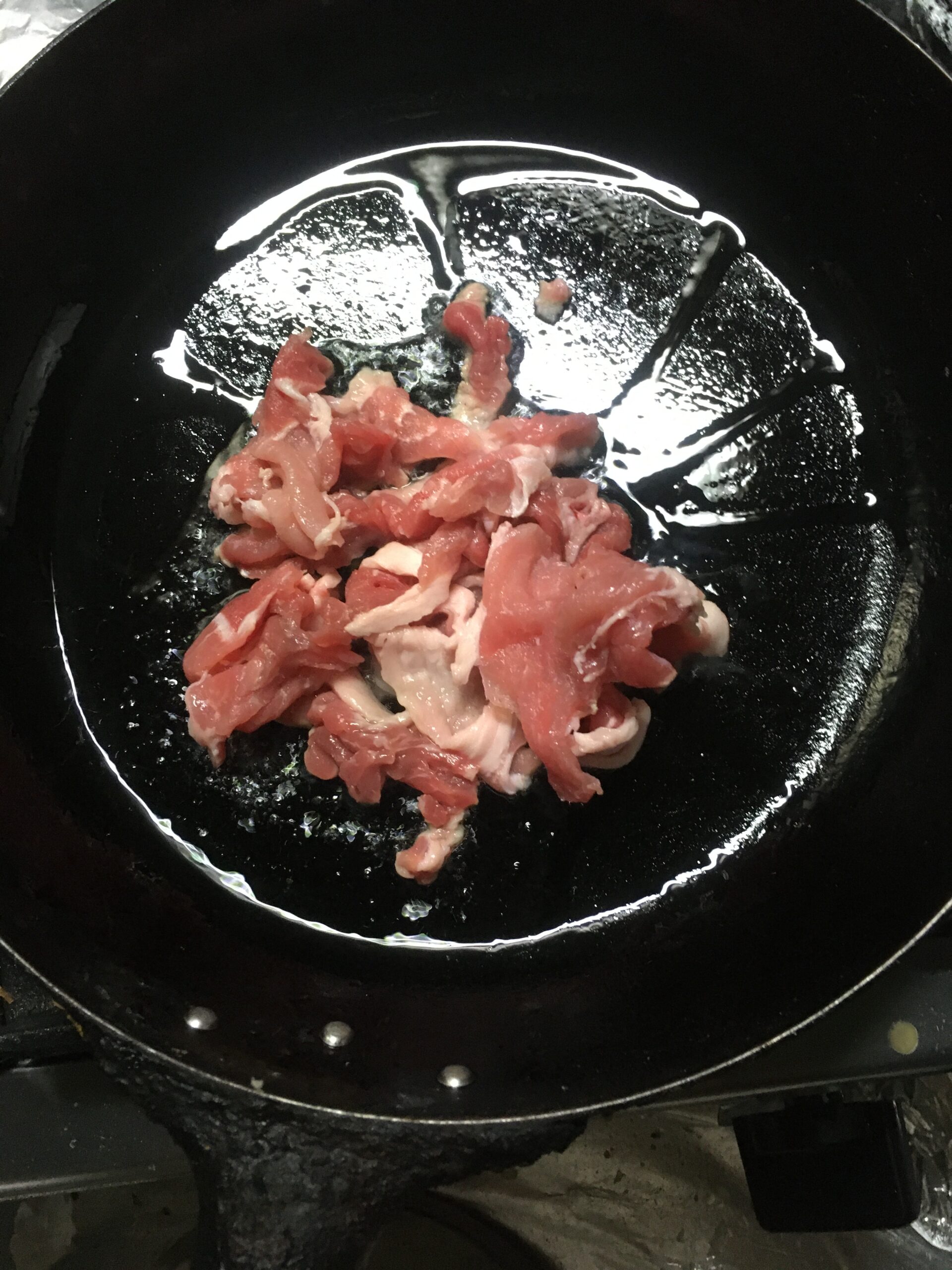 - 塩漬け豚ばら肉は5mmx10mm程度の拍子木にする