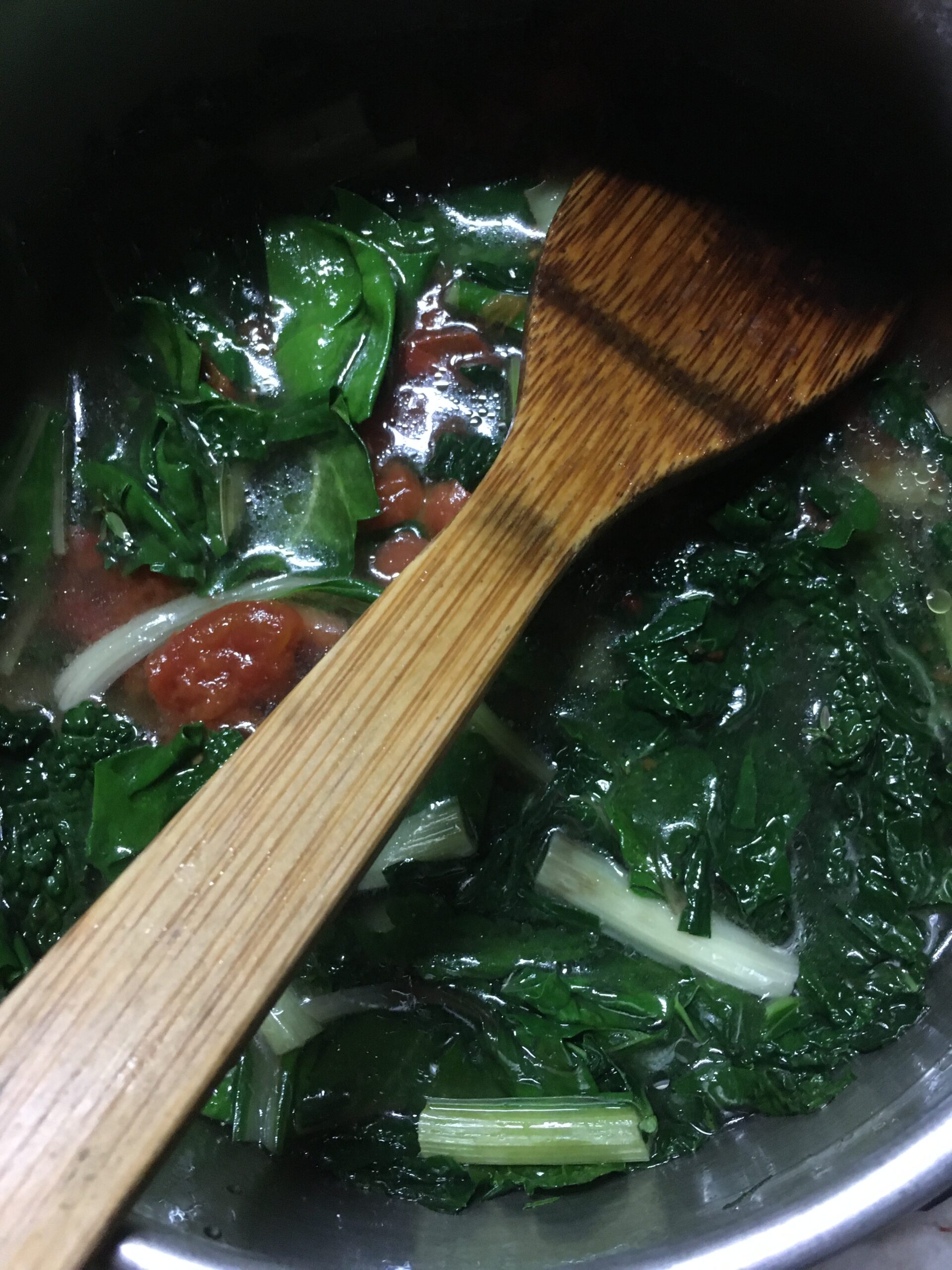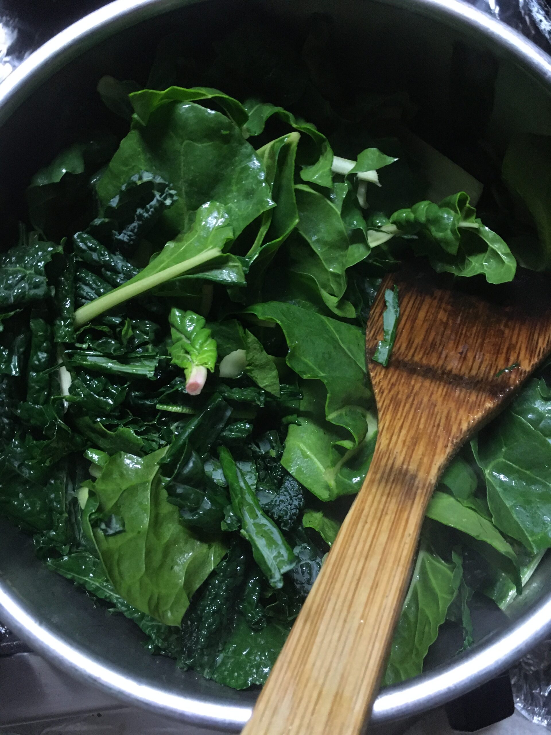 - カーヴォロネーロとビエトラをしんなりするまで炒める(嵩を減らすのが目的)