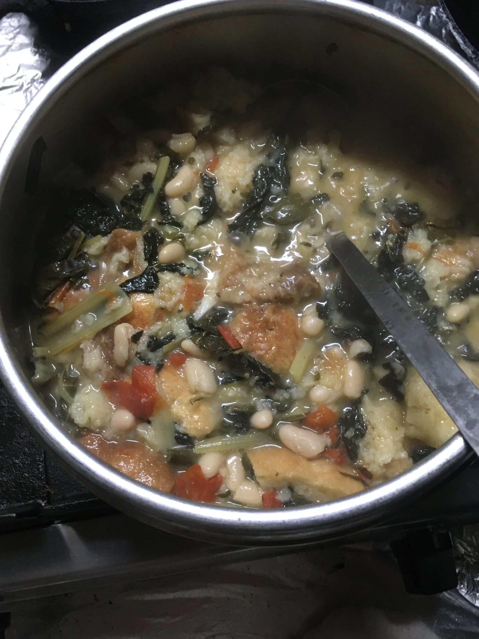 ribollita minimalista©2023 lespoucesverts Manabu GOTO カーヴォロネーロを使う料理といえばこれ! というくらい有名なイタリア・トスカーナ地方の郷土料理リボッリータをミニマルキュイジーヌに。