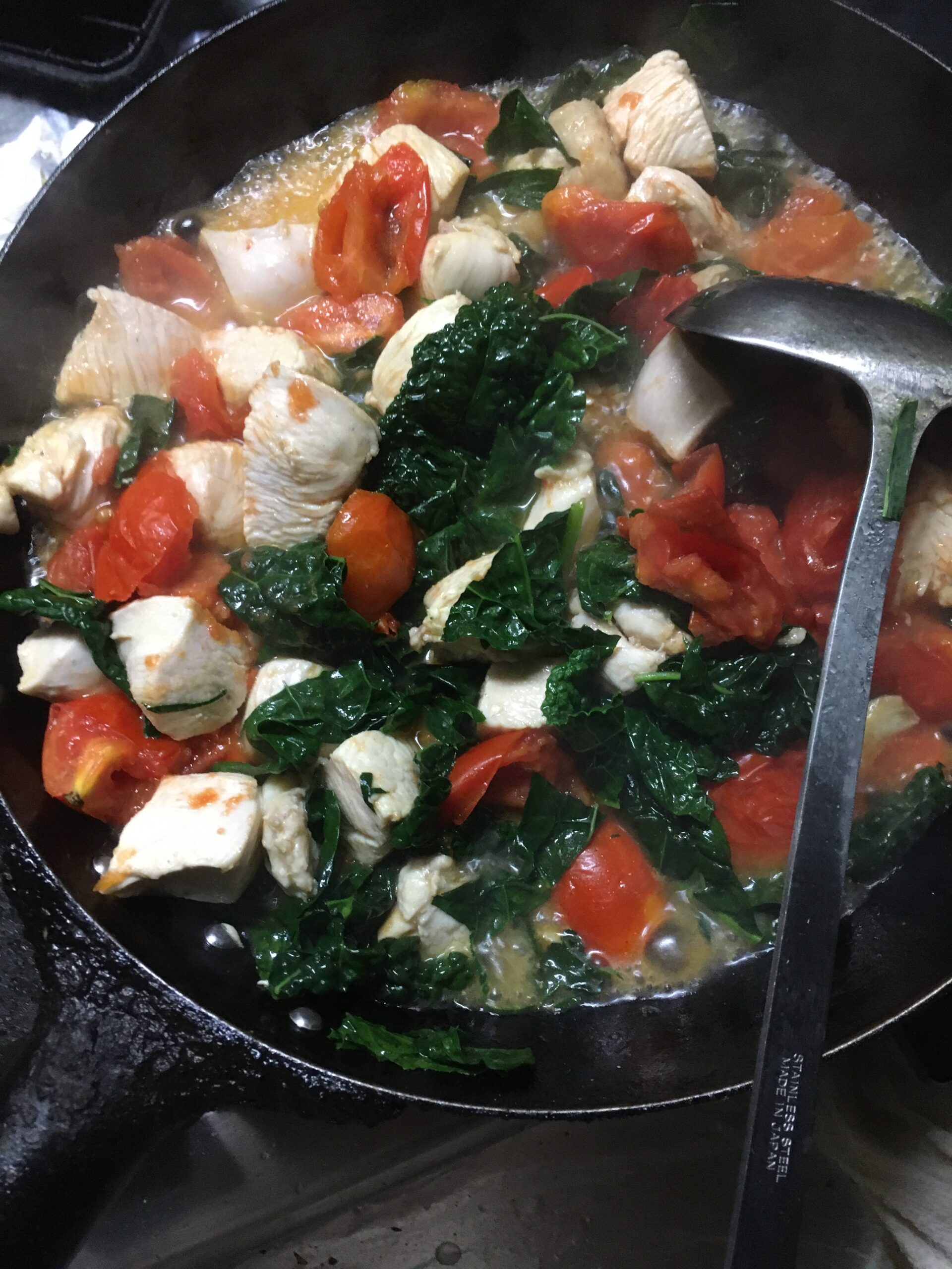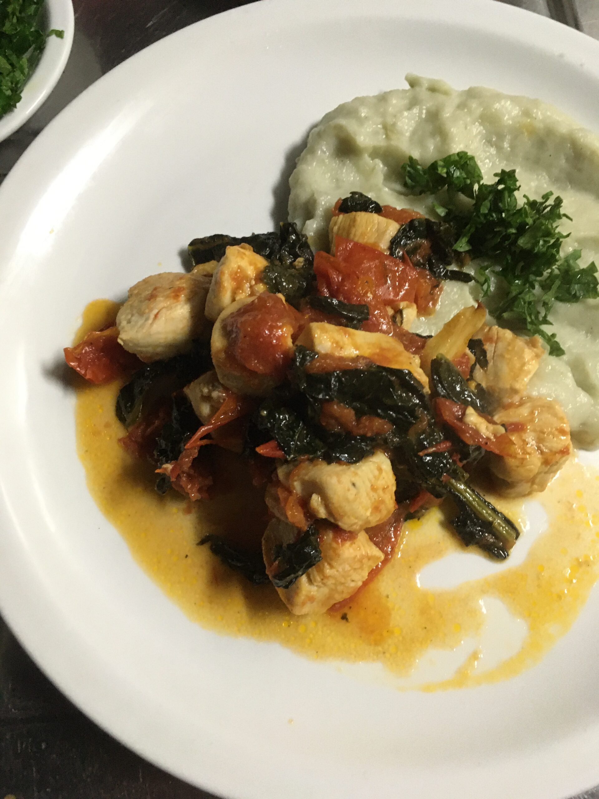 Pollo con pomodorino Principe Borghese e cavolo nero